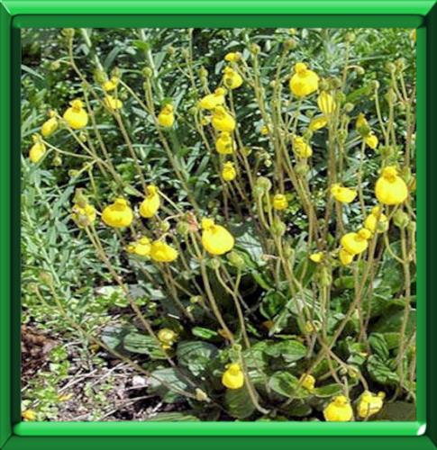 | La calcéolaire est aussi appelée "Pantoufle" et "Petite pantoufle" à cause de ses fleurs qui ressemblent à des petits sabots.