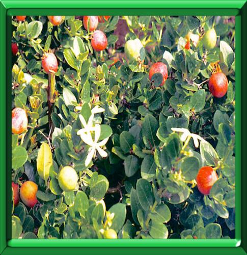 | Le Prunier du Natal est également appelé "Carissa à gros fruits".